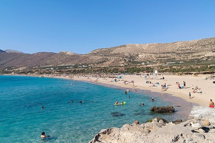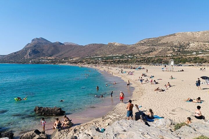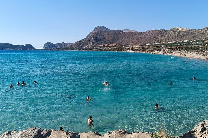 Next, head to Falassarna Beach, one of Crete’s most stunning coastal destinations. With its wide golden sands, turquoise waters, and sweeping mountain views, it’s the ideal setting for swimming, sunbathing, and unwinding in comfort. Beach gear such as umbrellas and towels are included, ensuring a hassle-free experience.