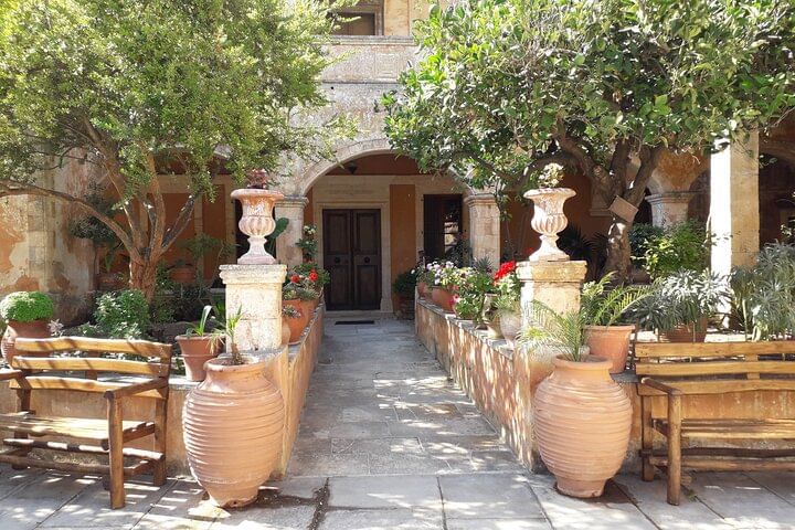 Agia Triada Monastery: Discover the serenity of the Agia Triada Monastery, an architectural masterpiece nestled amidst olive groves and vineyards on the Akrotiri peninsula.