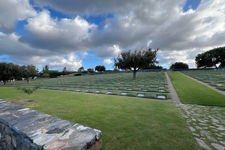 This private tour offers a powerful and immersive journey through key locations of the Battle of Crete. Led by a knowledgeable local guide, you'll explore historic war sites including the Allied cemetery at Souda Bay, the 42nd Street memorial, the Tavronitis Bridge, and the Maleme airfield. Along the way, you'll hear personal stories of courage and resistance from WWII, enjoy a coffee break at a seaside café in Maleme, and end with a visit to the wartime catacombs of Platanias. A perfect balance of history, reflection, and comfort — ideal for those who seek meaningful travel experiences.