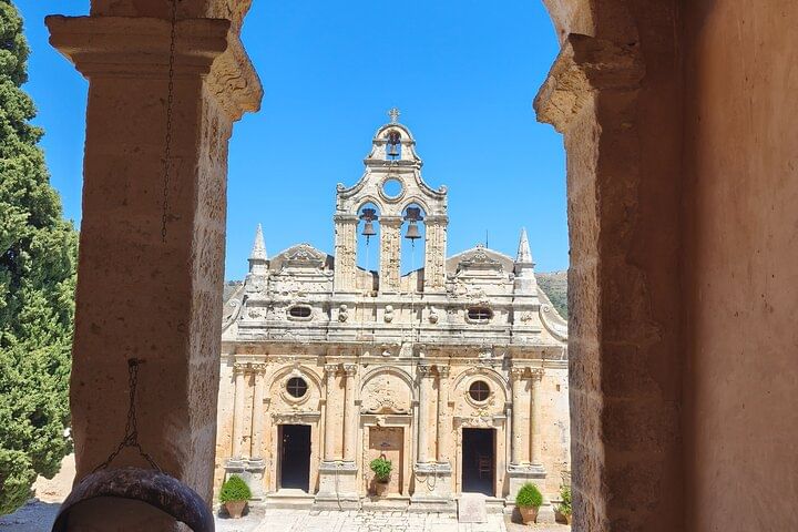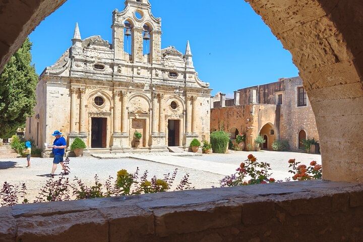 Discover Crete on a private full-day tour from Chania. Visit the historic Arkadi Monastery, hear the story of ancient Eleutherna, explore the pottery village of Margarites, descend into the Melidoni Cave, and wander through the old town of Rethymno.